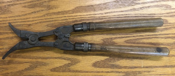 This weeks feature item is this original World War 2 German Pioneer wire cutters. This type of heavy duty wire cutters were mounted as standard tools on all German army heavy vehicles such as tanks and half tracks. They measure 18" long overall. $300.00 + tx