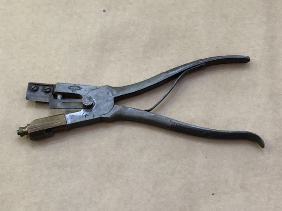 This weeks feature item is this antique J. Wiss & Son's button hole cutter for leather. You can cut different length slots by turning the brass barrel. It is in excellent condition and measures about 9 1/2" long overall. $45.00 + tx
