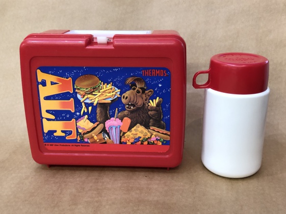 This weeks feature item is this vintage thermos brand 1987 ALF TV show red plastic lunch box & plain thermos. It is in excellent condition, the thermos is missing the ALF decal so it is just plain white with a red top. $25.00 + tx