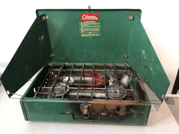 This weeks feature item is this very nice vintage Coleman No. 425E 2 Burner Camp Stove. It is in good to very good condition and is untested. $30.00 + tx